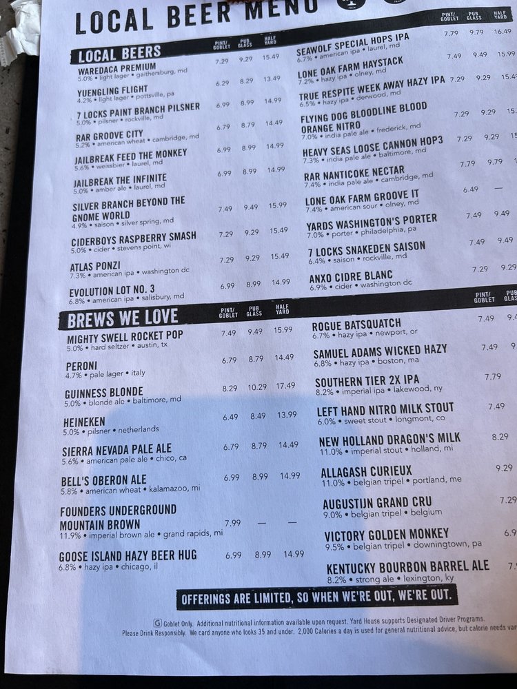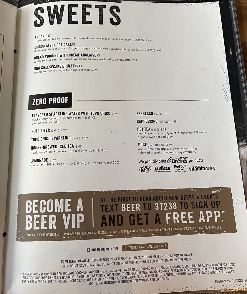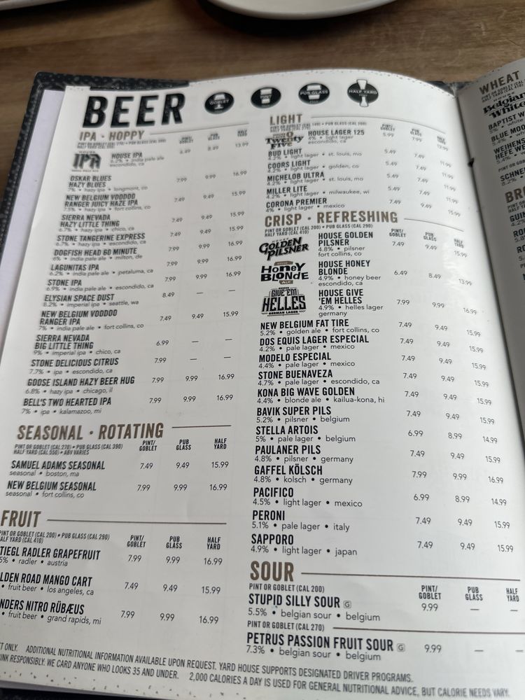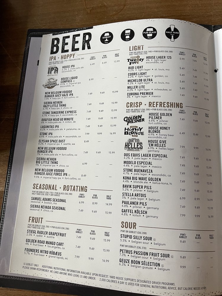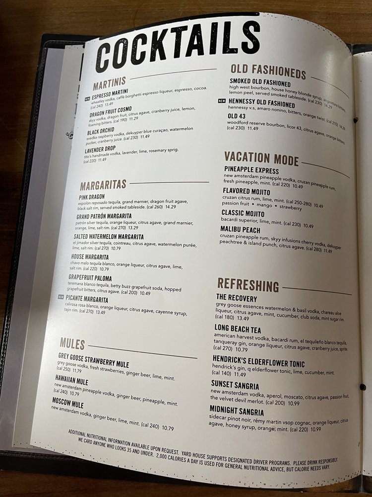 Yard House Menu