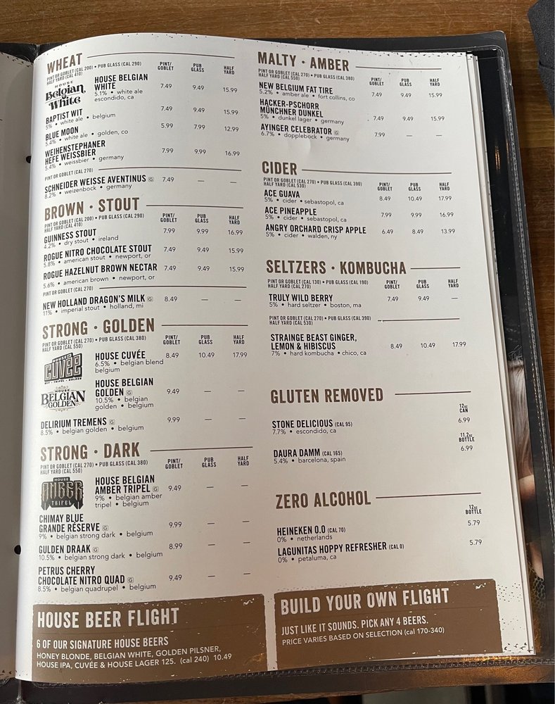Available in pint or goblet (cal 270) pub glass (cal 390) half yard (cal 550) abv varies