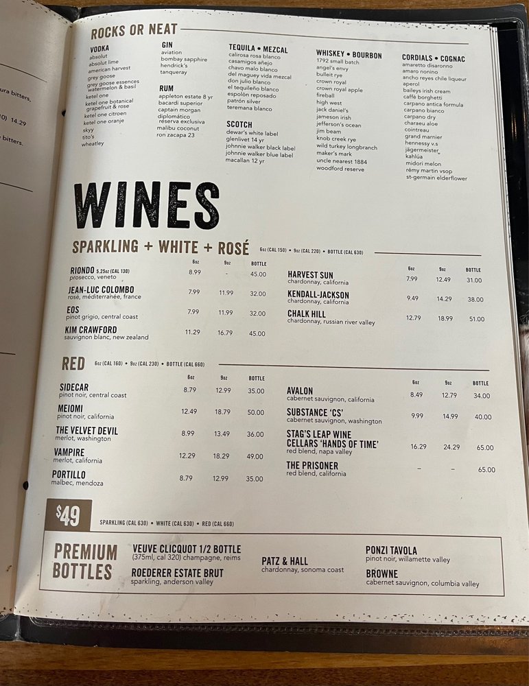 Screen press pinot noir, r-my martin vsop cognac, orange liqueur, citrus agave, honey syrup, orange, mint. (cal 220)